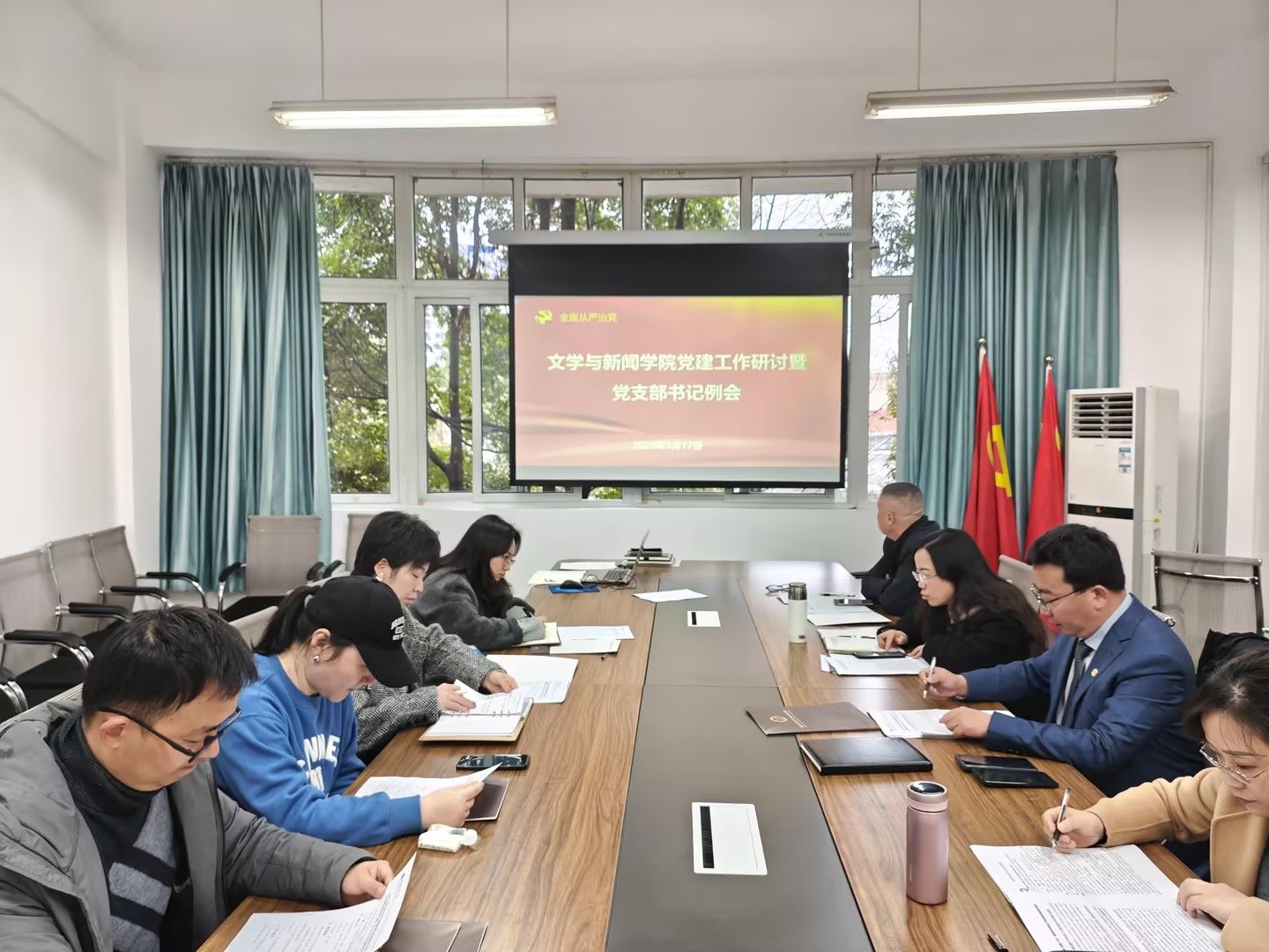 3月17日,9428cn太阳集团古天乐在90528会议室召开了2025年第一次党建工作研讨暨党支部书记例会。文新学院全体党委委员、党支部书记参会。会议由文新学院党委书记潘焱主持。