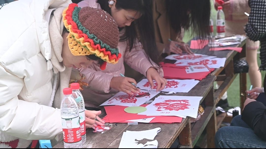 随后,李兴兰向同学们展示了精湛的花式踢毽技艺,介绍了“羽毛毽”的历史发展和制作工艺,并开展现场手工制作教学,她通过言传身教,切实增强了同学们对非遗传统文化的理解,激发了同学们对传统文化的学习热情。此外,活动还设置了“书法”“剪纸”“投壶礼射”“灯谜”““飞花令”“毽子制作”等六个体验环节,让同学们在丰富多彩的活动体验中,切身感受博大精深的非遗文化,让非遗文化在校园“生根发芽”,绽放光彩。重庆工商大学部分留学生也参与了此次活动,亲身体验中华优秀传统文化的魅力。