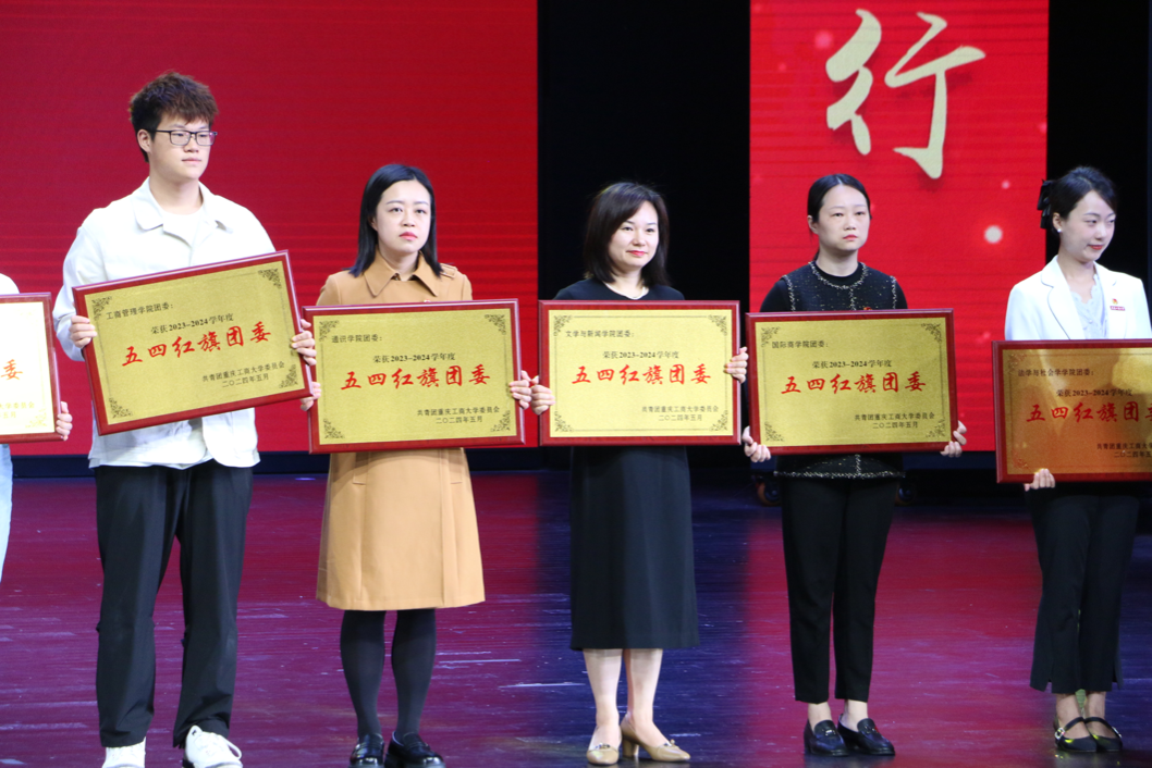 近日,我校“2024年五四表彰暨青年师生风采展示”大会顺利举行。大会为学习贯彻习近平总书记关于青年工作的重要思想,传承和发扬五四精神,表彰了2023-2024学年先进集体和个人,我院荣获多项荣誉。其中,我院分团委获评“2023-2024学年度五四红旗团委”称号、“共青团宣传工作奖”称号,我院发展成就观察团获评“2023年重庆市暑假三下乡社会实践优秀团队”称号。