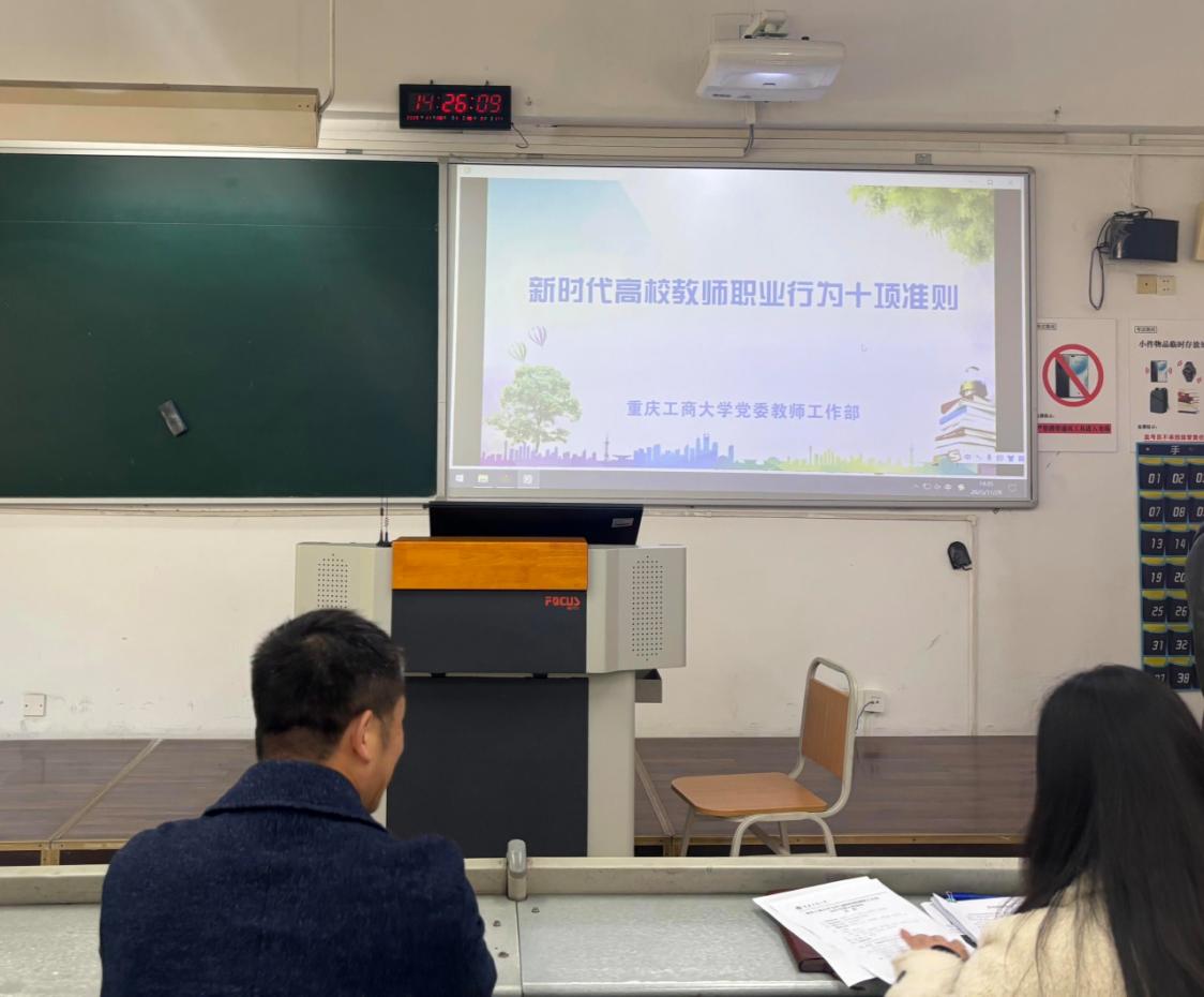 会前,会场持续循环播放由学校党委教师工作部制作的《新时代高校教师职业行为十项准则》解读视频,通过生动形象的视听形式,帮助与会教师深化对职业道德规范的理解。