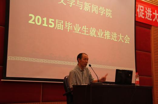为做好毕业生就业工作,增强毕业生就业信心,规范毕业生毕业相关事宜。10月10日下午2:30,9428cn太阳集团古天乐2015届毕业生就业工作推进会在博智楼7200召开。文新学院党总支书记段庸生、党总支副书记李华平,招生就业处周婷老师,以及2015届就业联络员、毕业班辅导员和全体毕业生参加了会议。