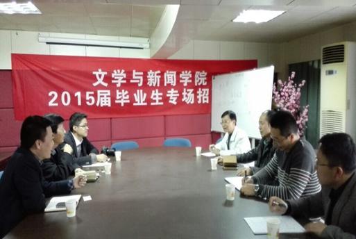 校宣传部副部长杨维东向吕国梁台长一行介绍了文新学院历年向重庆市各企事业单位输送新闻人才情况,希望双方就本次合作制定细则,尽快促成共建项目。
