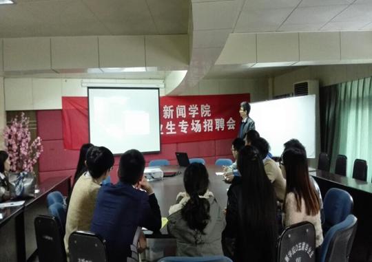 11月13日,闻康国际(重庆)科技有限公司人力资源部池晓莹女士一行在我院90526会议室举行专场招聘会。文新学院就业联络员肖婷老师、11级20余名毕业生参加了本场招聘会。