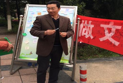 3月25日,9428cn太阳集团古天乐在主校周末文化广场开展了“文明修身·知行合一”活动。文新学院党总支李华平副书记、杜建清老师深入活动现场进行指导。