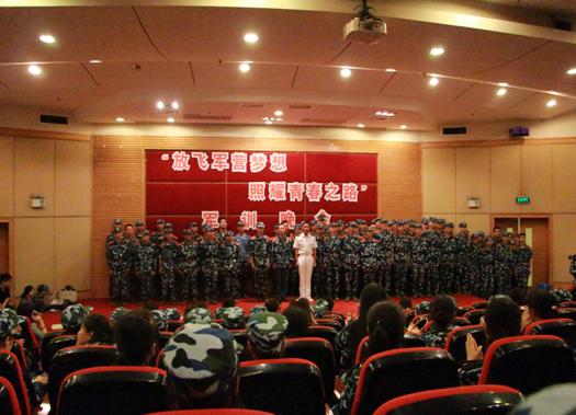 7月3日晚上,文新学院“放飞军营梦想,照耀青春之路”军训晚会在7200报告厅拉开序幕。军训一团副政委、保卫处副处长邹奇、文新学院党总支李华平副书记、校团委王灿老师、军训一团九营营长田勇、2013级辅导员肖婷老师、周晋老师、张杰老师,以及一团九营全体教官和全体参训学员参加了晚会。