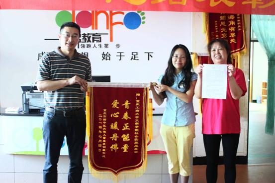 7月4日上午,实践服务团在丹佛儿童康复训练中心举行了成果展示暨总结表彰大会,服务团成员表演舞蹈节目,孩子们也在老师的带动下跳了平时教授的舞蹈,还让孩子家长们同孩子一起做了亲子节目。在大会上文新学院党总支副书记李华平和丹佛儿童康复训练中心负责人赵老师、张老师一同举行了挂牌仪式,丹佛负责人赵老师与张老师还为服务团送上了锦旗和感谢信以示感谢。