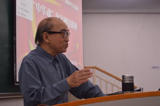 5月15日下午,由重庆工商大学关工委主办,9428cn太阳集团古天乐院承办的“践行核心价值观,凝聚中华正能量”中华魂征文辅导讲座在慧智楼90226教室举行。文新学院退休教师傅德岷教授主讲,关工委办公室主任周惠明、常务副主任吴应发、文新学院党总支副书记李华平、辅导员代表及部分学生代表参加了本次讲座。
