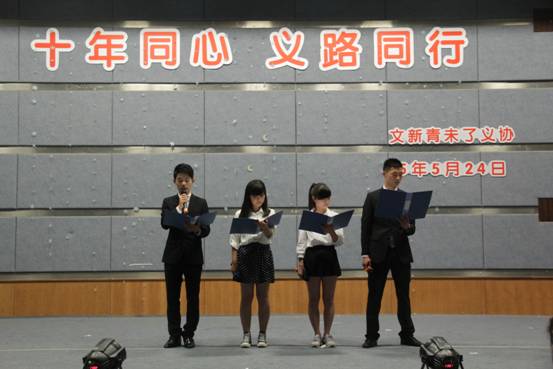 5月24日,重庆工商大学文新学院“青未了”义工志愿者协会在博智楼7100举办了“十年同心·义路同行”十周年庆典,重庆市南岸区团委书记陕闪、重庆工商大学文新学院分团委书记杜建清、重庆市启明星智障儿童康复托养中心园长何梅、重庆市丹佛儿童康复训练中心负责人赵老师、重庆阳光职业康复园唐毅,历届会长及500名学生参加了本次活动。