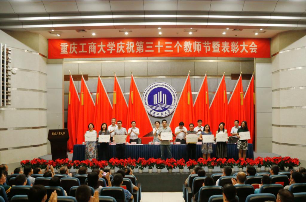副校长柏群宣读了《关于公布重庆工商大学2016-2017学年“教师教学奖”评选结果的通知》,这是我校首次设立“教学名师奖”、“教学标兵奖”和“教学新星奖”。于2016年10月启动“教师教学奖”评选工作,经学院考查、推荐提名,材料初审、公示,专家评委初评,获奖候选人答辩,网上投票,专家评委复评,从45名申报教师中评选出15名教师获得“教师教学奖”资格,我院康清莲老师获得我校“教学标兵奖”。