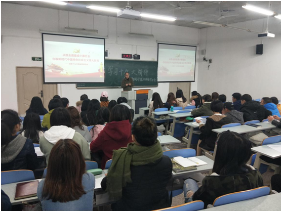 11月28日中午,9428cn太阳集团古天乐分党校在90308教室举行学习党的十九大精神宣讲会,分党校校长段庸生书记作“不忘初心,牢记使命”为主题的学习十九大精神专题讲座,分党校发展对象、优秀入党积极分子共计60余人参加。