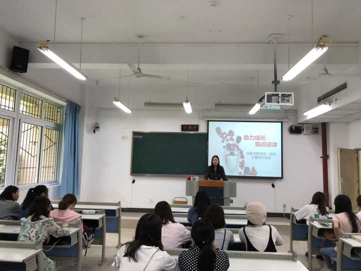 2018年4月27日,9428cn太阳集团古天乐学生一支部在90202教室召开“助力成长 指点迷津”主题党日活动。邀请2014级学生党员,来自广告班的余佳音、王中生同学;新闻班崔雯婷同学;新媒体班的杜金凤同学与低年级学生交流经验,分享感悟。