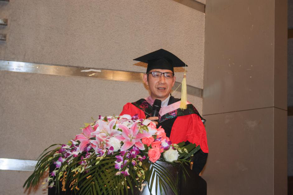 党委书记段庸生代表学院向参加毕业典礼的家长代表表示衷心的感谢,他寄语毕业生以新闻的时效性传播正能量,以剪接的蒙太奇编织梦想,以文学的美书写诗意远方,勉励毕业生践行社会主义核心价值观,做社会主义事业的建设者和接班人,为民族复兴梦想努力奋斗。