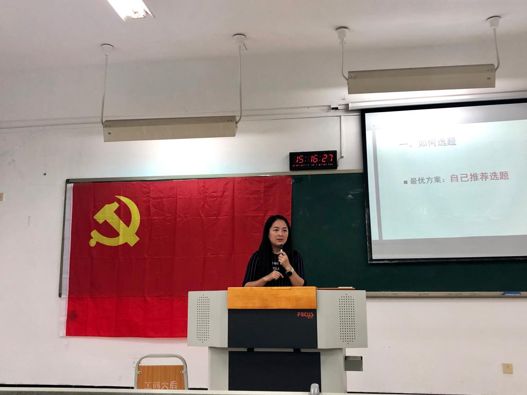 第二位上台分享科研经验的是邓若伊教授,主持国家社科基金1项、省部级项目2项;已发表论文48篇,其中A3、B1、B2重要期刊10篇,CSSCI期刊和核心期刊论文24篇;出版专著6部。邓若伊教授发言的主题是国家社科基金的申报,她从如何选题、前期成果、论证方法、框架结构、创新点、成员搭配等六个方面进行了经验分享。