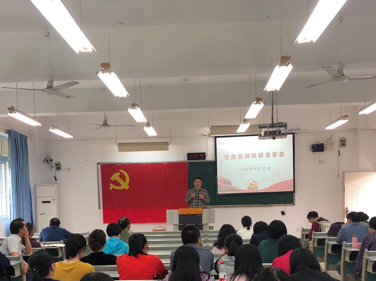10月11日下午,文新学院在90624教室组织开展了学术骨干党员教师科研经验分享会。学院领导班子成员、全体教师参与了此次活动。活动由学院分党委副书记李华平主持,他强调组织开展本次活动的目的主要有两个方面,一是为了践行“不忘初心、牢记使命”主题教育活动,彰显党员教师的先进性和示范引领性,二是通过学术骨干党员教师的科研经验分享,引导和鼓励学院教师积极从事科研工作,提升科研能力,凝炼学科特色方向,进一步推动学院学科建设。