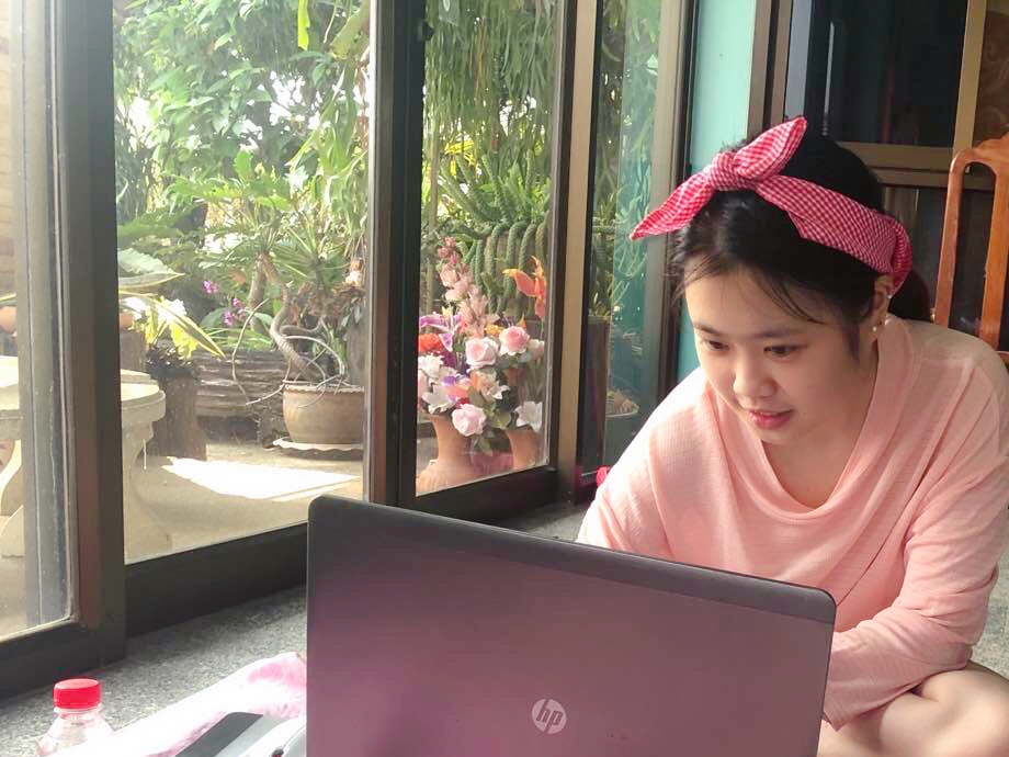 图二 留学生美佳正在泰国家中进行直播课程学习