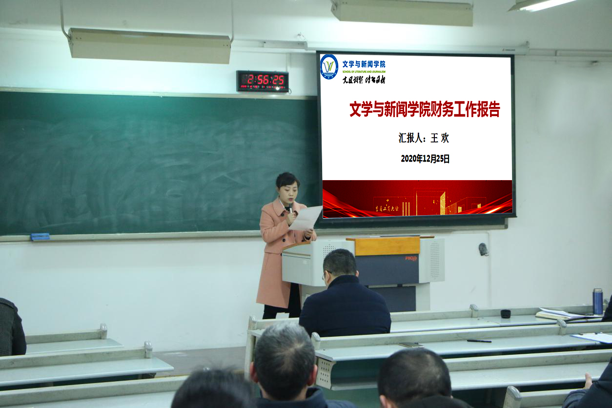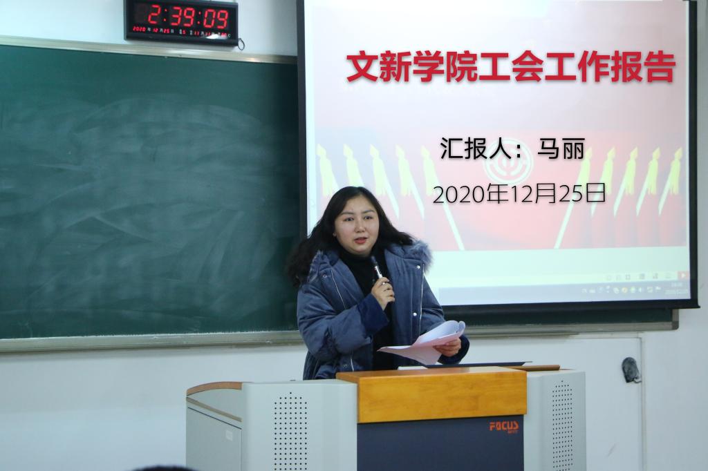 代表们认真听取并审议通过了学院工会主席马丽作的《文新学院工会工作报告》,专职组织员王欢(兼综合办主任)作的《文新学院财务工作报告》,工会委员王孟琪作的《文新学院工会财务收支情况的报告》。