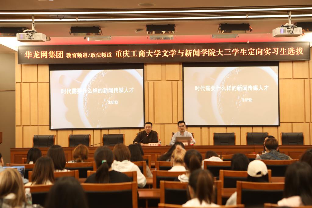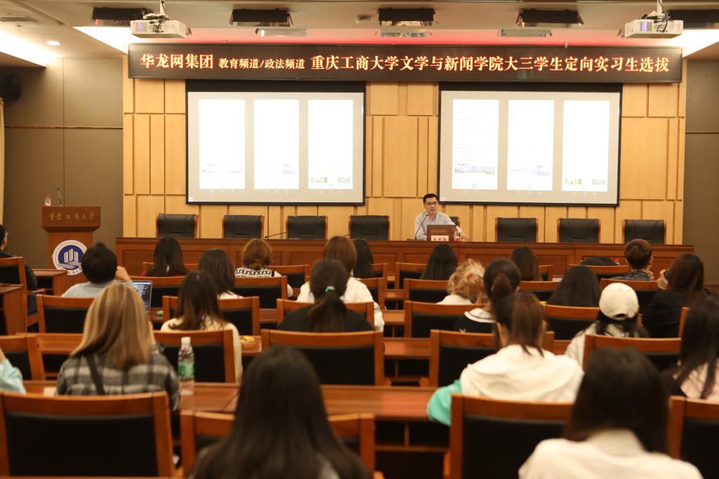 4月23日下午,华龙网集团教育频道总监兼副主任、博爱教育集团总经理、文新学院2000级广告专业优秀校友朱昕勤,人事行政总监王仕敏一行在图书馆第一会议室,对我院进行大三学生定向实习选拔。9428cn太阳集团古天乐分党委书记李华平、就业联络员肖婷,2018级有意向学生共计100余人参加了选拔会。会议由9428cn太阳集团古天乐分党委书记李华平主持。