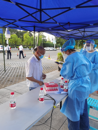 面对重庆高达40摄氏度的气温,为避免有人员中暑,相关工作人员决定分时间段进行核酸检测。龚琳芮所在的队伍是从四点多开始对人员进行核酸检测。在检测过程中,一次录入被检测人员信息的时候系统出现了错误,龚琳芮不知道该人员的信息是否被录入,她害怕会因为这个原因导致人员的核酸检测结果出错,于是找到了工作人员,及时修复了系统,庆幸的是里面的信息也并未出错。龚琳芮说:“其实整个核酸检测的过程是比较顺利的,在这么炎热的天气下,来进行检测的人员也非常积极配合,十分体谅我们的工作,也没有催促我们。我们虽然在服务他们,但他们也在温暖着我们的心。”在同伴们的眼中,她细心负责,虽然挺辛苦,但她也在认真做好每一件小事。