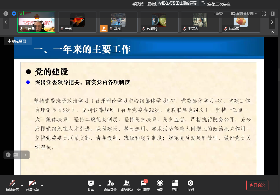 王仕勇院长在会议上作2022年工作报告。报告全面总结回顾了过去一年学院在党的建设、人才培养、学科建设、师资建设、科研工作、社会服务、开放合作办学、疫情防控等方面工作取得的成绩。提出来年工作部署,进一步贯彻落实党的二十大精神,坚持党的教育方针,深化“三全育人”改革,加强一流学科建设,提升服务创新发展能力,加大高端人才引育力度,打造更高水平师资队伍。