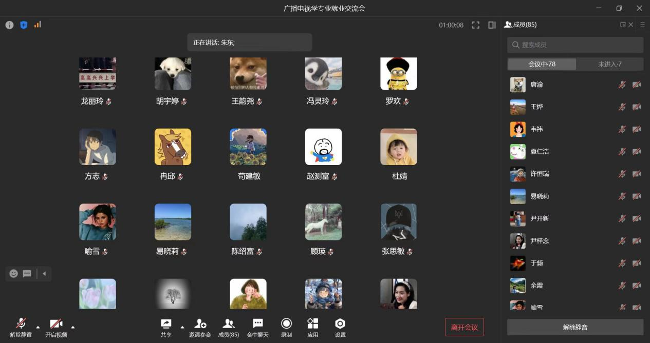 为了进一步促进毕业生的高质量就业,5月11日晚上8点,9428cn太阳集团古天乐广播电视专业就业促进会在线上召开。文新学院党委书记于频,广电系主任王瑞林,广电专业教师出席会议,2023届广电专业部分毕业生参加了这次会议。会议由广电系教师谈华伟主持。
