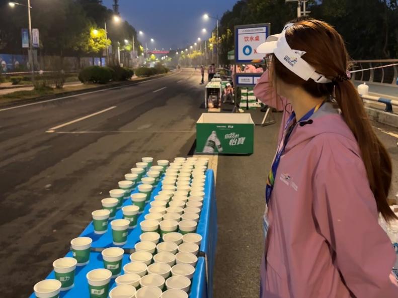 在本次赛事中,我院志愿者负责饮水饮料和吸水海绵的补给工作,他们按照要求提前将沾满水的海绵及装有运动饮料、矿泉水的纸杯有序地摆放在桌上供跑者取用,并及时补充物资,提供专业暖心的服务,同时送上一声声的“加油”和掌声鼓励,以饱满的状态让来自五湖四海的跑者们感受到重庆大学生的热情,彰显青春活力。