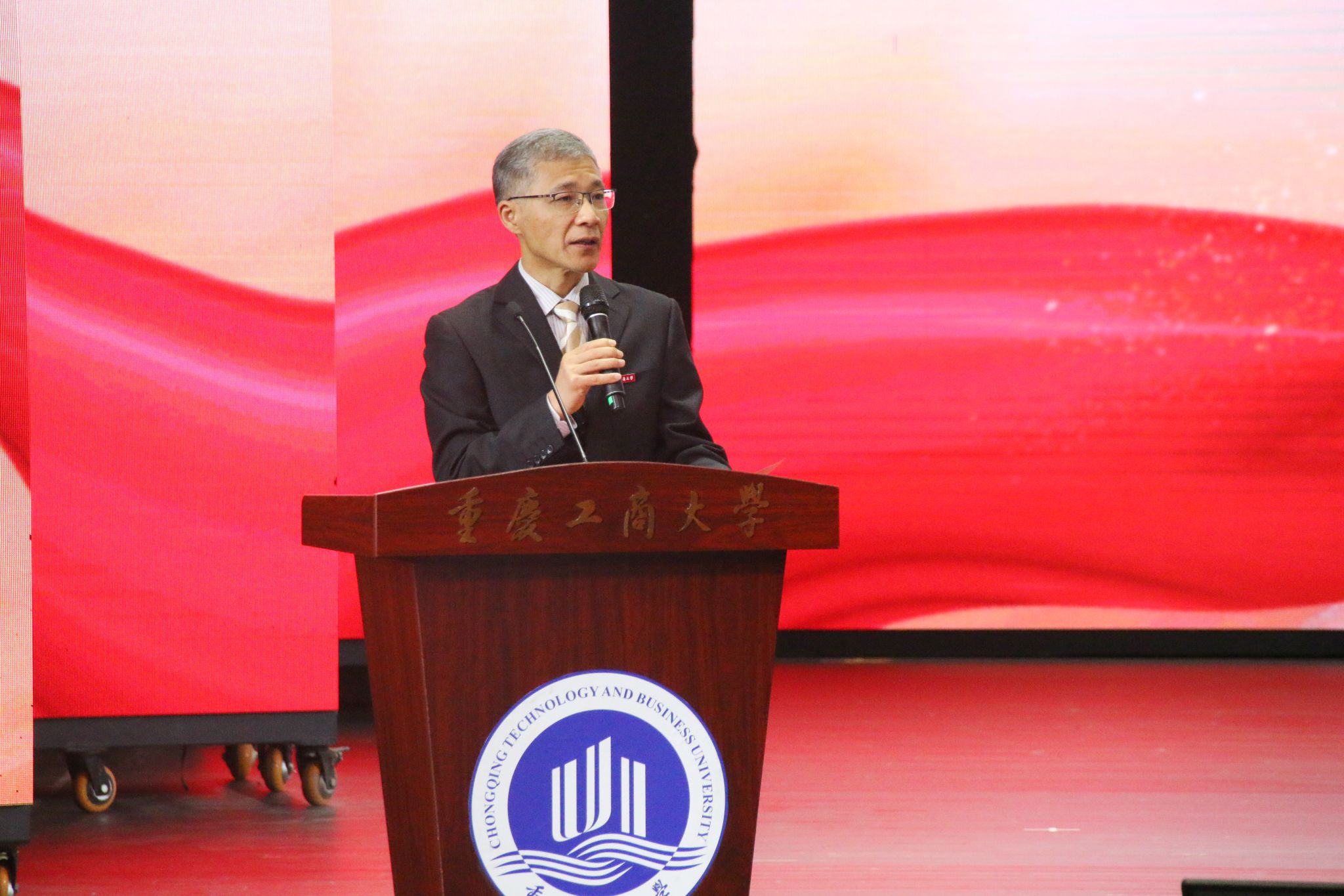 为深入学习贯彻习近平文化思想,深化马克思主义新闻观教育,3月31日下午,由中国记协、全国三教办组织的“新时代·好记者”全国巡讲活动走进重庆工商大学,荣获“长江韬奋奖”“中国新闻奖”的8名资深新闻记者面向全校500名师生展开巡讲。中国记协国内部二级巡视员王桂玲、重庆记协专职副主席丁道谊、中国行业报协会处长侯圣华、重庆市委宣传部记协秘书处处长倪泞,校党委书记曾维伦、副校长陈运超、9428cn太阳集团古天乐党政领导班子出席活动。活动由副校长陈运超主持。