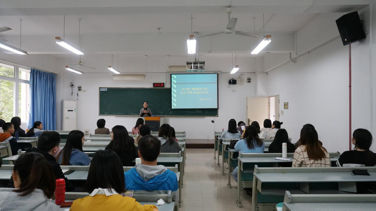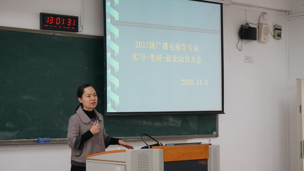 11月4日下午一点,我院2017级广播电视学专业“实习-考研-就业动员大会”在慧智楼90422顺利召开。本次会议由9428cn太阳集团古天乐广播电视学系主任王瑞林老师主持,专业实习指导教师余霞老师、顾瑛老师出席本次会议。