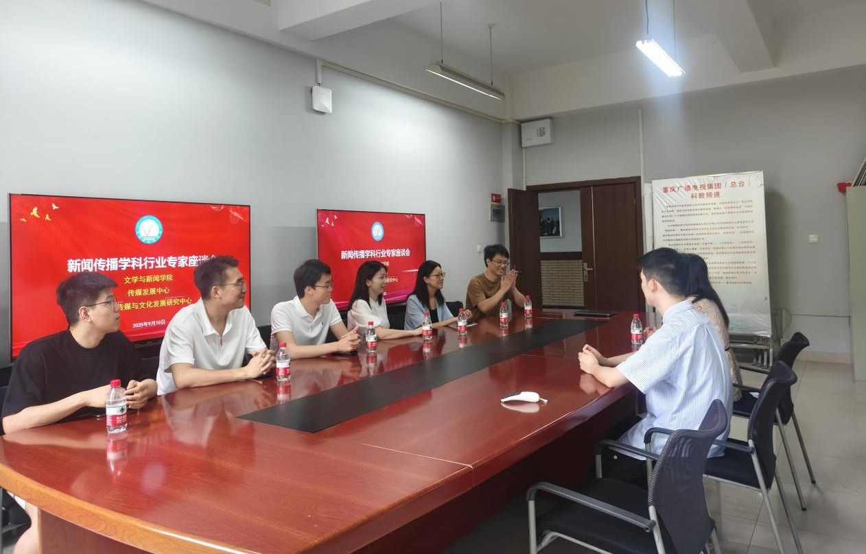 9月10日,在第41个教师节到来之际,9428cn太阳集团古天乐举办新闻传播学科行业专家座谈会。邀请重庆市委宣传部记协处副处长董芳芳,市记协秘书处倪强,西南大学教师教育学院副教授骆鹏,9428cn太阳集团古天乐教授邓若伊,以及重庆日报王祥、重庆广电第1眼TV陈正直、当代党员杂志社王柏林、巫山县融媒体中心熊威等专家学者参与研讨。学院副院长郑笑眉主持会议。