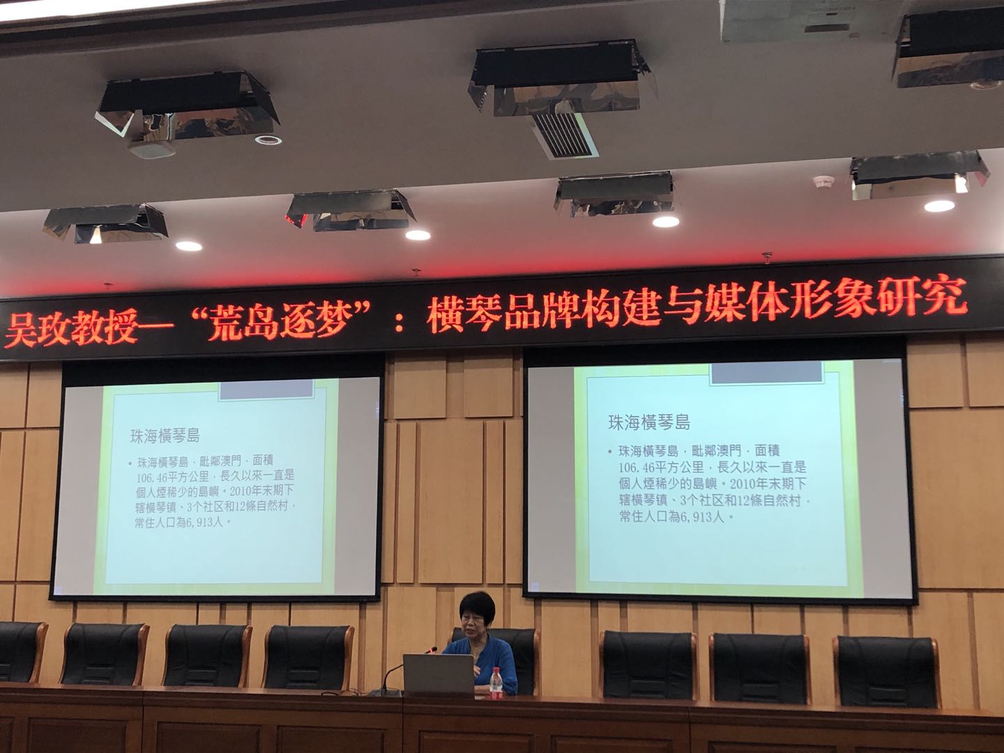 吴玫教授详细介绍了边陲小岛横琴的12年蝶变和自贸区历史,认为目前关于区域品牌有大量的研究,但大多数集中在对访客的调查,少有从区域品牌身份建构的符号特征和语义策略来分析,于是试图在此方面做新的研究尝试,为区域品牌研究开辟新思路。吴玫教授表示,该项目主要应用符号融合理论和幻想主题分析法,对横琴品牌构建的宣传材料和媒体报道进行深入剖析,进一步揭示横琴品牌设计背后的语义视野和价值观倾向,解析横琴品牌身份塑造的困境。吴玫教授指出,目前,横琴品牌身份设计的难题在于它长久以来是个荒岛,没有工业化建设,没有品牌身份建构所依赖的人文资源,例如生活习俗、历史记忆、地标建筑等。但正是如此,它的品牌身份建构如同在“在白纸上作画”,一张白纸才可以绘出最新、最美的图画,这是一个有着无限可能的“梦想岛”。