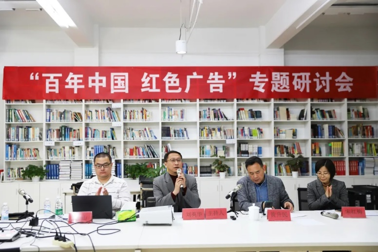 上午10:00,研讨会正式开始。中国广告博物馆秘书长、中国传媒大学广告学院刘英华教授主持会议,简述了研讨会的举办目的并介绍与会嘉宾。随后中国新闻史学会会长、中国人民大学新闻学院副院长王润泽教授致辞,表示“红色广告”这个新词汇是学术研究中较为细化的新研究方向。北京大学新闻与传播学院党委书记兼副院长陈刚教授在致辞中谈及了“红色广告”的边界问题。上海师范大学人文与传播学院金定海教授认为本次展览所收集的史料开拓了广告研究的一个新领域。