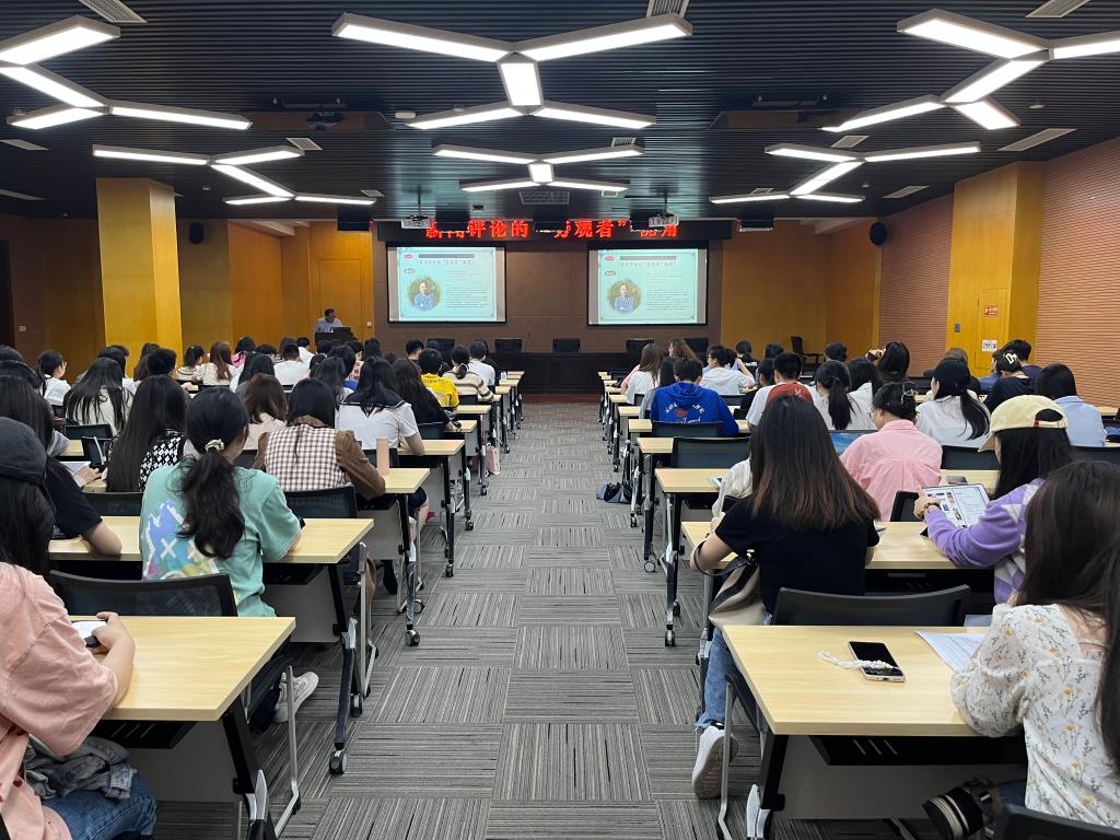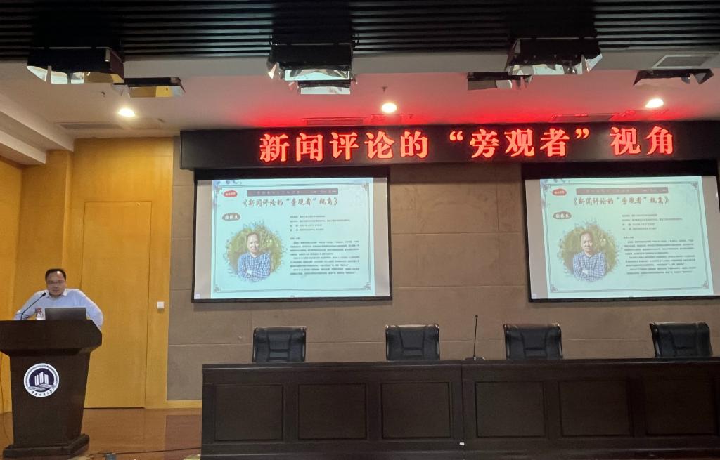 讲座伊始,徐林生从新闻评论的现实影响力、新闻评论视角的重要性与新闻评论“旁观者”视角选择三个方面展开。他运用丰富的案例,鞭辟入里的解读了新闻评论是引导舆论的“矫正器”、分析新闻的“显微镜”、解读新闻的“望远镜”、解决问题的“药引子”以及推动事件正向发展的“助推器”。同时,他还总结了新闻评论具有强公共性、强突破性、强建设性的特性。近几年,他一直保持着每周两篇,一年百余篇的新闻评论数量产出,这种对新闻评论的坚持深深激励着学子们。