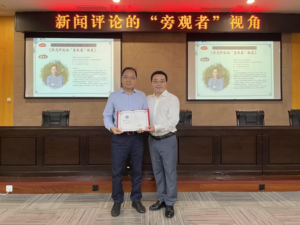 殷俊院长介绍道,徐林生教授的许多新闻评论作品在各大媒体刊出,产生了极大的社会影响力。我院聘请徐教授担任行业导师,对加强学院学界与业界紧密合作,培养优秀新闻传播人才具有重要意义。