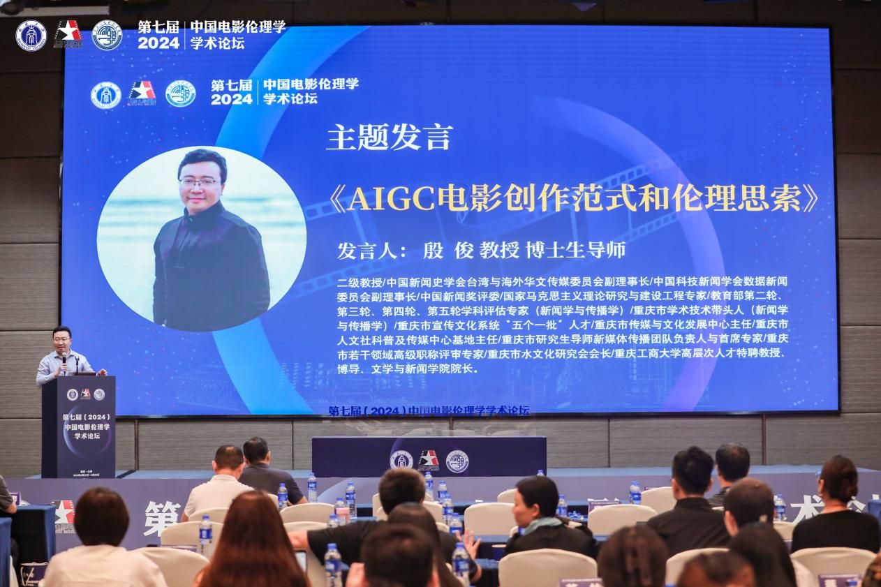 在分论坛主题发言环节中,殷俊教授以《AIGC电影创作范式和伦理思索》为题从AIGC+电影:打造创作新范式,技术创新带来的伦理冲击,人才、产业、技术共融共创三个方面展开,他认为技术变革不是加法,也不是减法,而是生态上的变化。AIGC对于艺术创作的深入发展研究已然引发了电影工业“生态上的变化”。并提出从课程接入:技术赋能专业教育,产业接入:“3+38+N”全媒智能人才培养模式,技术接入:探索AIGC应用新场景实现多元共创3个方面进行学科和专业层面的建设。