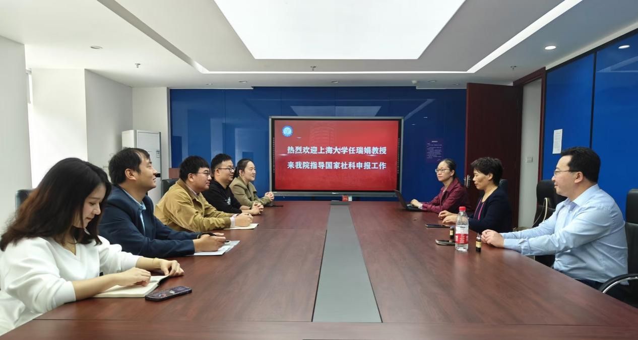 10月14日上午,9428cn太阳集团古天乐邀请上海大学全球人工智能媒体与传播研究院副院长、新闻传播学院博导任瑞娟教授指导国社科申报工作,并作《国家社科基金申报说明》主题讲座。学院院长殷俊、副院长郑笑眉、新闻系系主任廖宇翃及青年教师们参加,讲座由郑笑眉主持。