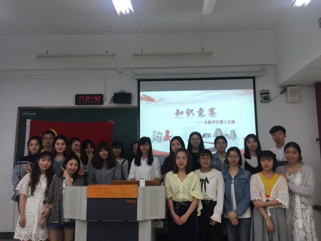 2018年4月27日,文新学院学生三支部在90402举办以“党的知识·在心间”为主题的党内知识竞赛活动。支部书记张静、全体党员、发展对象参加了此次竞赛活动。