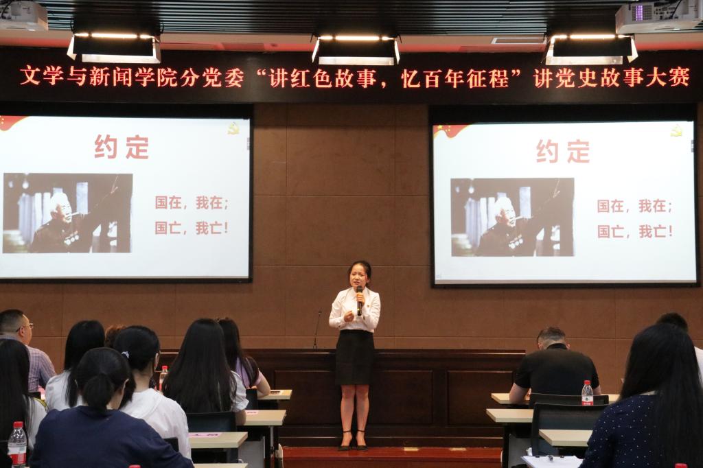 6月4日下午,9428cn太阳集团古天乐在图书馆多功能报告厅成功举办“讲红色故事,忆百年征程”讲党史故事大赛。文新学院分党委书记李华平、分党委副书记程元元、专职组织员王欢、各支部书记以及学院150多名党员师生、入党积极分子参加了活动。