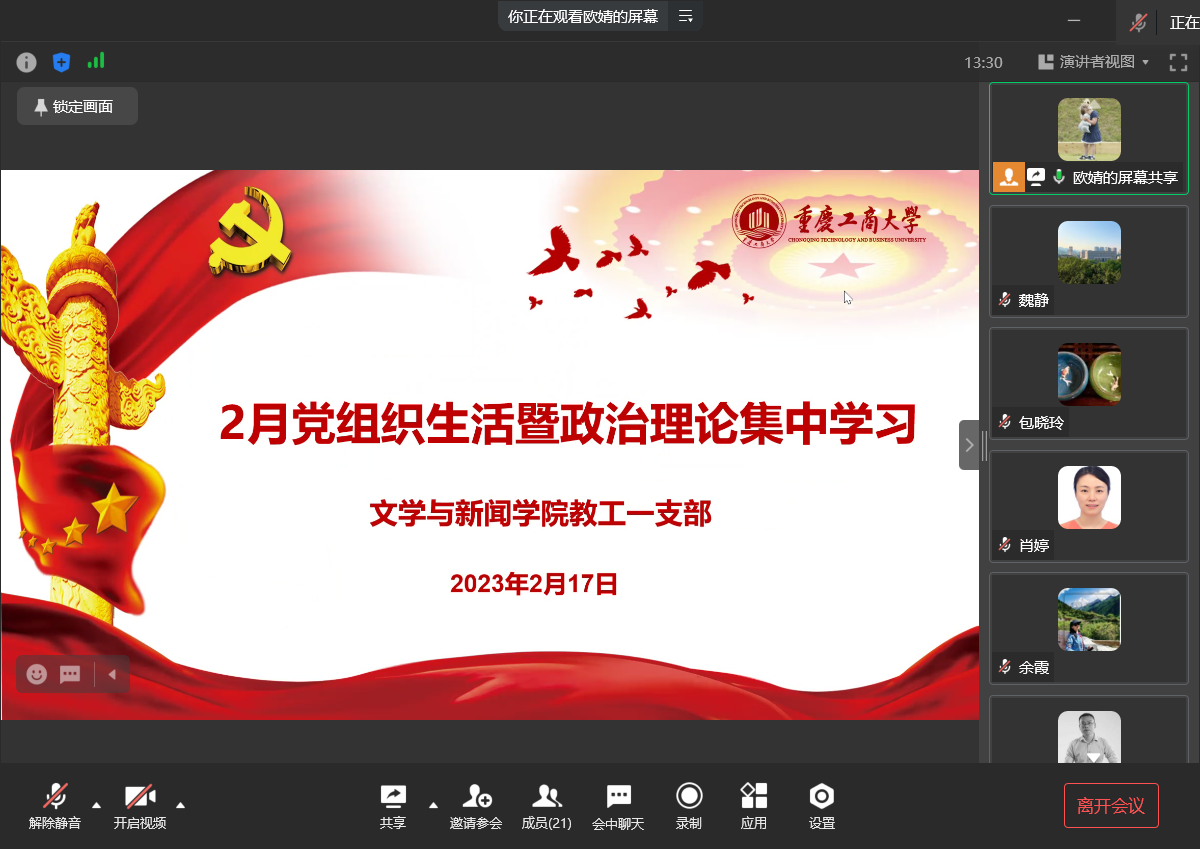 9428cn太阳集团古天乐教工第一党支部于2月17日在企业微信群线上开展2月组织生活,由支部书记欧婧主持。