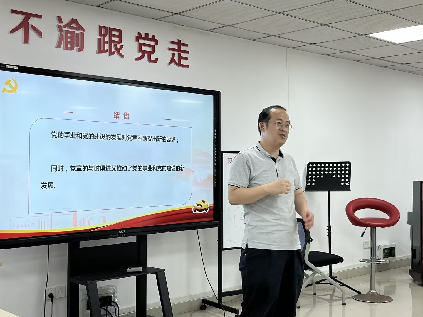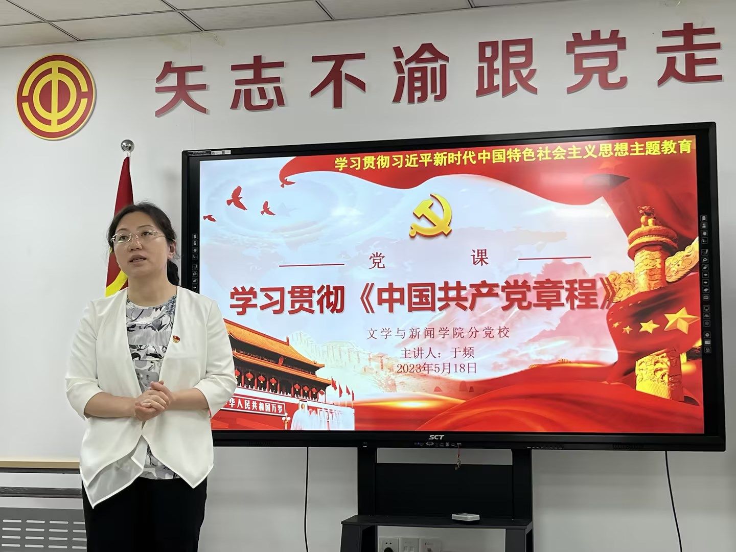 于频首先强调了学习贯彻党章的重要性:党章具有权威性、全面性、学科性等特点;认真学习党章、严格遵守党章,是加强党的建设的一项基础性、经常性工作,也是全党同志的应尽义务和庄严责任,对强化全党党章意识,增强党的创造力、凝聚力、战斗力具有极为重要的作用。接着,于频重点讲解了二十大党章的诞生历程,对二十大党章总纲和条文的修改部分进行了一一介绍。她讲道:党的二十大对党章的修改,既继承了中国共产党修改党章的历史经验,又赋予党章以中国特色社会主义新的时代特色;学懂弄通党的二十大对党章做出的重要修改,深入领会党章精神,严格遵守党章各项规定,对全体党员来说是基本要求。最后,于频希望同志们按照主题教育的要求,认真学好党章以及其他学习材料。