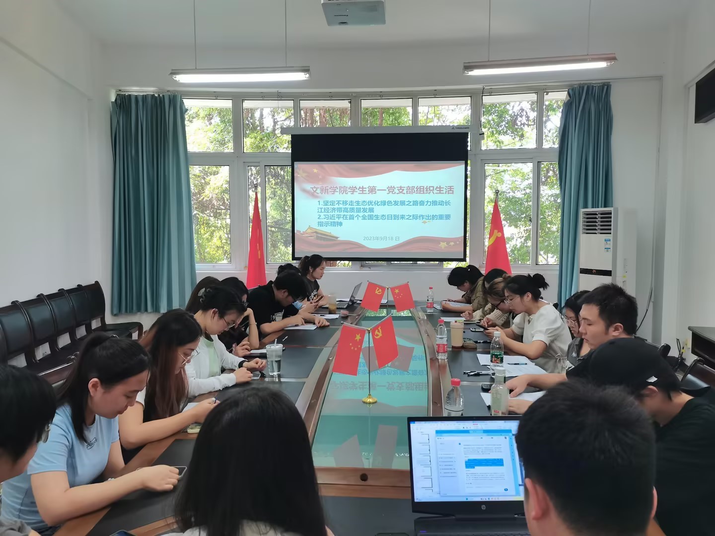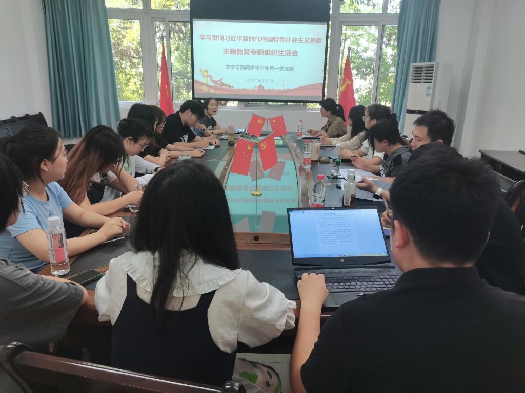 根据上级统一部署和学院党委要求,2023年9月18日中午,文新学院学生第一党支部在慧智楼90528会议室组织召开了学习贯彻习近平新时代中国特色社会主义思想主题教育专题组织生活会。支部全体党员同志参加了会议,会议由支部书记张小焕主持。