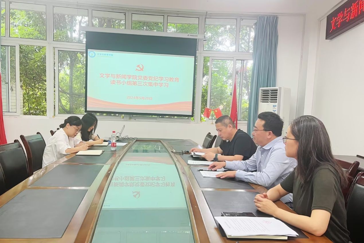 5月20日上午,9428cn太阳集团古天乐党委在慧智楼90528会议室开展党纪学习教育读书小组第三次集中学习会。学院党纪学习教育小组全体成员参加学习。会议由学院党委副书记、院长殷俊主持。