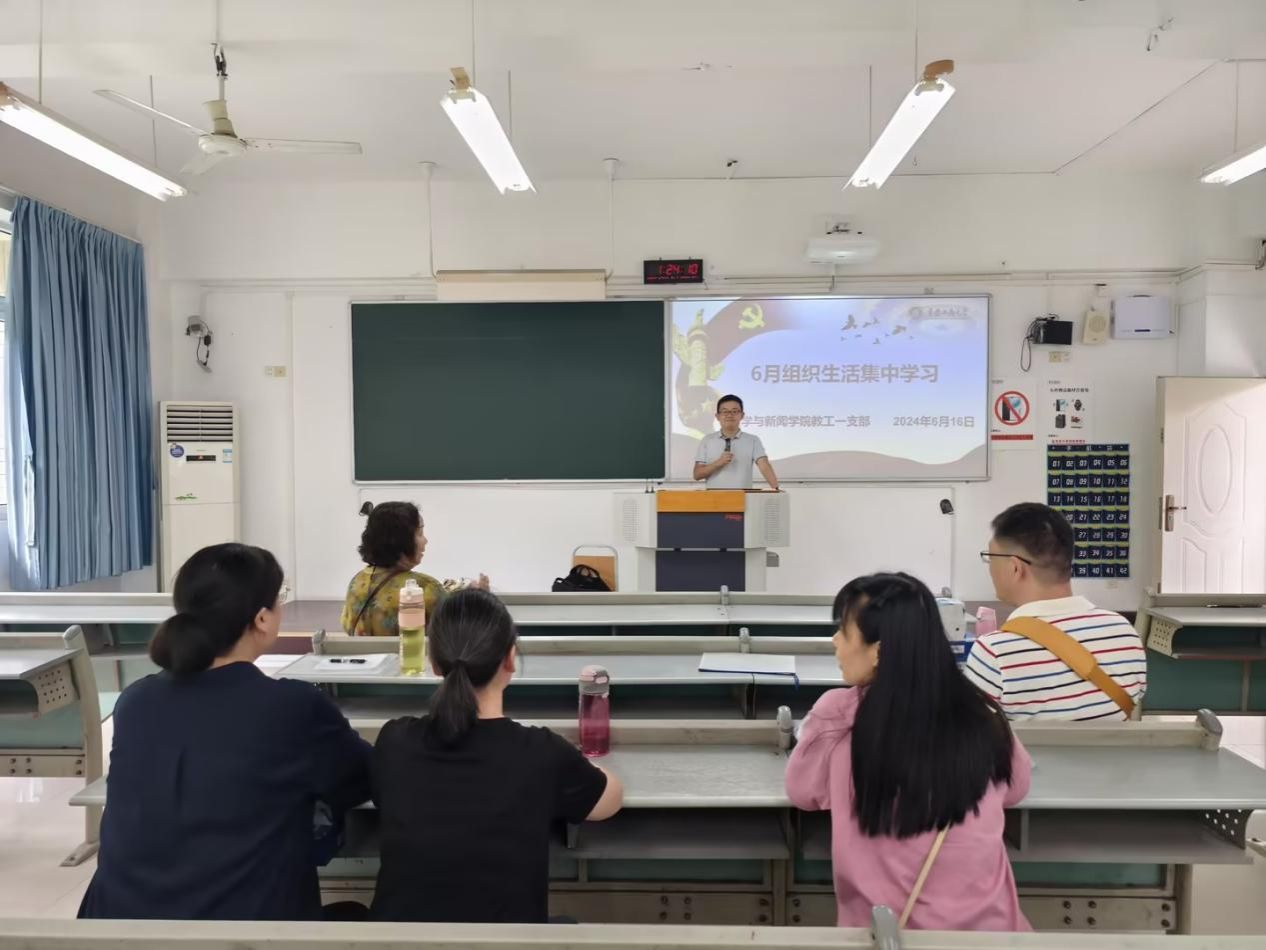 6月21日下午,我院教工第一党支部在90625教室开展2024年6月组织生活,持续跟进学习习近平总书记近期重要讲话和重要指示批示精神、文章精神与中央会议精神,会议由支部书记谈华伟主持并领学。