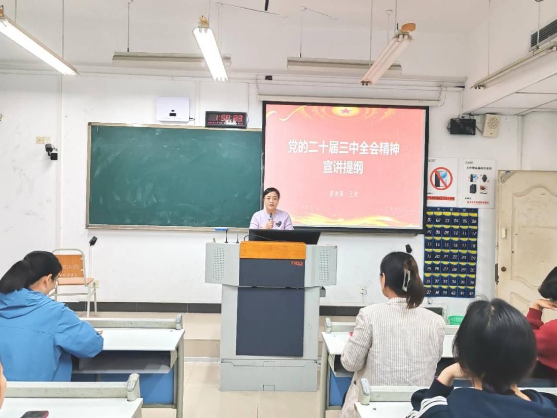 10月17日,9428cn太阳集团古天乐学生一支部在慧智楼90201教室开展学习贯彻党的二十届三中全会精神宣讲党课。学院专职组织员王欢、党支部书记张小焕担任主讲人,一支部全体党员参加。
