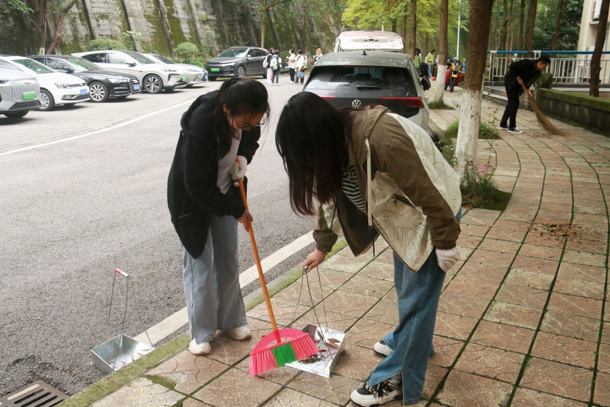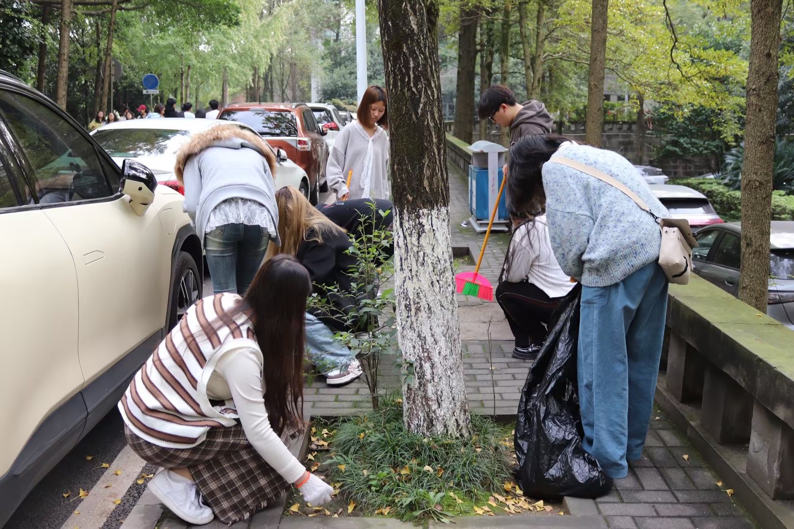 本次活动成功吸引了100余名文新学子走出课堂,围绕九教慧智楼区域展开了一场别开生面的劳动教育实践。活动现场,同学们以班级为单位,协同合作,各展所长。通过细致入微地捡垃圾、清理落叶等行动,在劳动中挥洒汗水,切身体验劳动的乐趣与价值。经过一个多小时的辛勤劳作,教学楼及其周边区域焕然一新,垃圾与落叶被彻底清除,充分展现了我院学子为营造优美校园环境所贡献的青春力量。