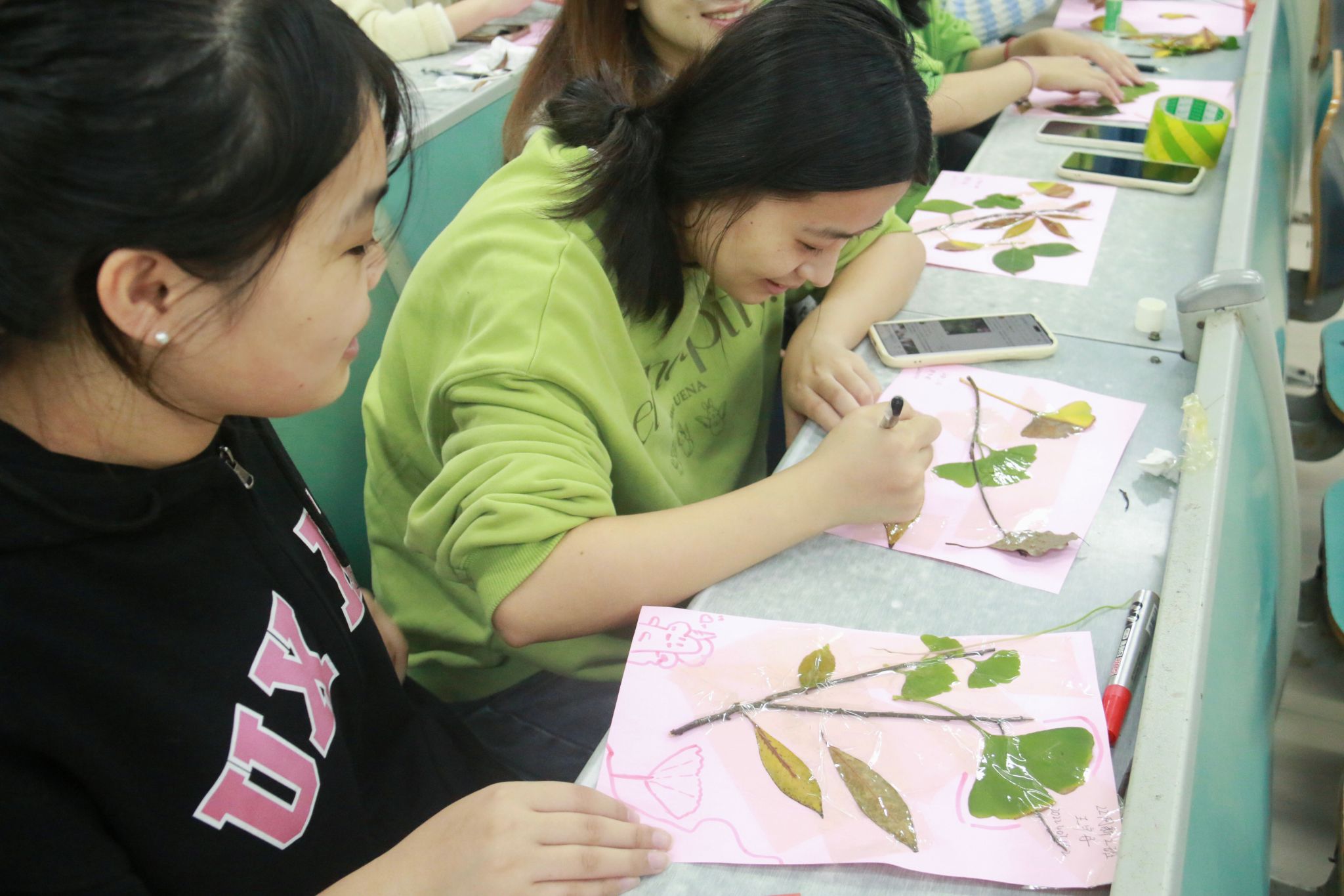 随后,参与“秋叶创作”环节的同学纷纷施展想象力与创造力,将之前拾得的落叶巧妙转化为一件件手工作品。这些充满创意的佳作是同学们劳动智慧与成果的直观展现,生动诠释了劳动创造美的真谛,赢得了现场师生的连连赞叹。同学们纷纷表示:此次手工创作活动不仅丰富了课余生活,更在潜移默化中激发了大家对劳动的热爱与尊重,让大家享受劳动带来的乐趣与成就感。