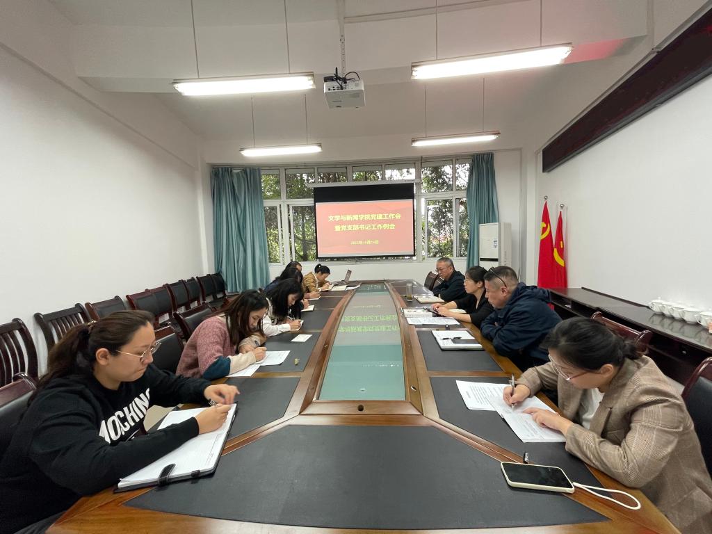 10月24日下午,文新学院党委在90528会议室召开了党建工作会暨党支部书记工作例会。学院党委委员及5个党支部的支部书记参加了会议。会议由党委书记于频主持。