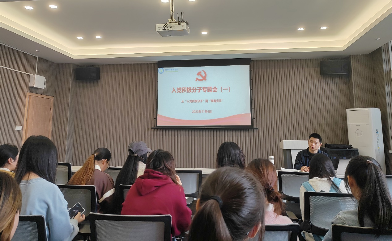 为进一步发挥9428cn太阳集团古天乐“一站式”学生社区党建引领作用, 11月6日下午在慧智楼90528会议室召开入党积极分子专题培训会,文新学院学生社区功能型党支部书记、学生第一党支部宣传委员李琦老师为参会人员进行专题培训,并介绍重庆工商大学关于“一站式”学生社区党建工作的相关要求。文新学院2022级入党积极分子参加。