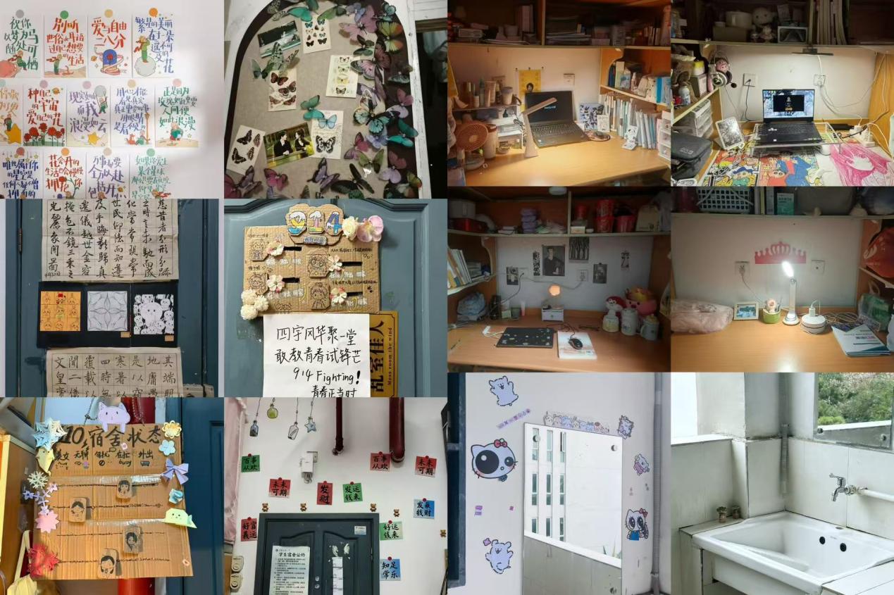 在参评寝室中,不少寝室将文化艺术融入布置。有的寝室以手写字画装点墙面,或清新雅致如,或古朴大气,尽显人文底蕴;有的则以蝴蝶元素打造“蝶梦空间”,斑斓的蝴蝶装饰似在墙面翩跹,为寝室增添灵动诗意。还有的寝室将洗漱空间、生活区域打理得干净明亮,一尘不染。在这里,室友们共度朝暮,分享喜乐,让寝室成为了远在他乡的第二个家。