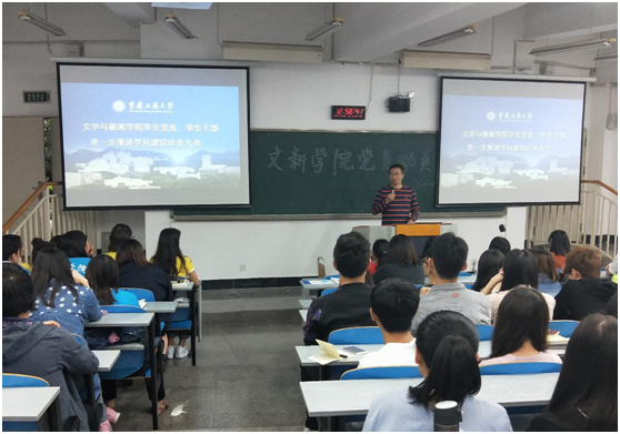 大会由学院分团委书记孔海啸老师主持,辅导员王涛老师向全体学生党员、学生干部解读了此次本科教学评估的内容、原则、目的及意义;学院分管学生工作的李华平副书记在会上做了动员讲话。李华平副书记详细分析了重庆工商大学目前面临的“双一流”建设、博士学位授权点和教育部对普通高等学校新一轮的定位分类三个发展形势,并结合 “学校十三五规划”和转型升位,强调了此次本科教学水平审核评估对我校长远发展的重要意义。