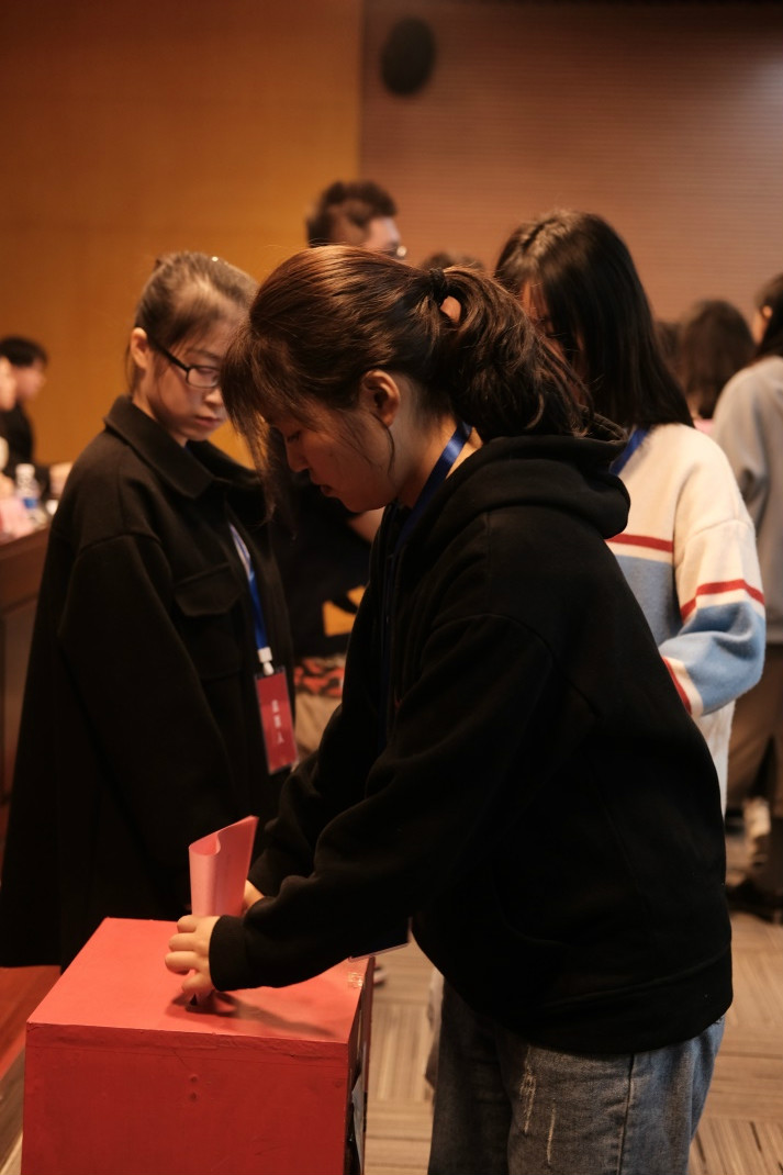 紧接着,第二次全体会议图书馆多功能报告厅举行。会上,通过了《9428cn太阳集团古天乐第一次学生代表大会选举办法》和学代会总监票员、监票员、总计票员、计票员名单,随后选举产生重庆工商大学学生会新一届主席团成员。总监票员孙见洪同学宣读选举结果,张楠、蒋欣瑜、谭茂雪当选为学生会第一节主席团成员,审议并通过《关于9428cn太阳集团古天乐学生委员会工作报告的决议》。大会在嘹亮的团歌声中胜利闭幕。