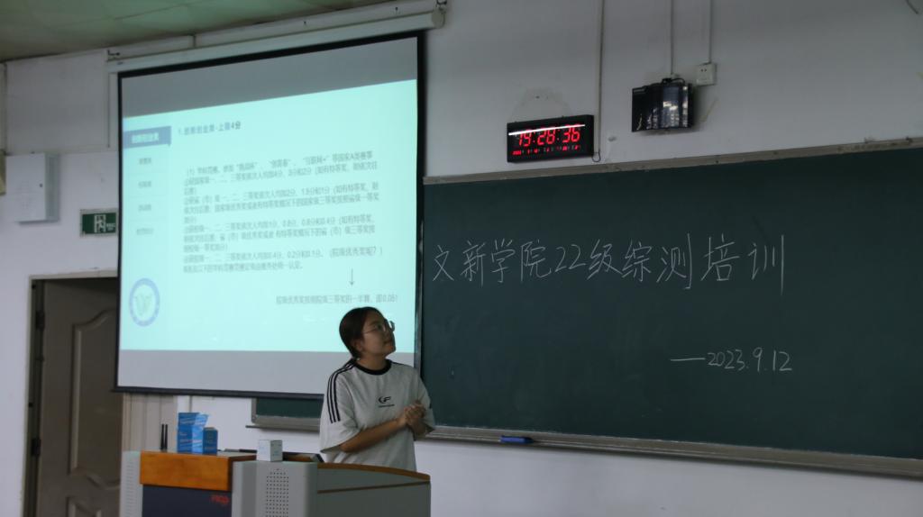 会议开始,21级学生代表魏心悦从综测的定义、综测的构成、综测计算流程三个方面出发,为同学们详细介绍了综测计算的相关细则和注意事项,强调了综合测评结果在评优评先、推优入党等方面的重要作用,鼓励各班在综测计算工作中相互交流、积极沟通,要求各班委充分理解并向班级同学准确传达本次会议的相关内容,本着认真负责的态度和公平、公正、公开的原则开展综测计算工作。此外,21级学生代表秦瑞在此基础上,就综测计算板块中的奖惩加分模块进行了详细解读,展示相关证明材料收集过程,为大家提供相关统计辅助资料。